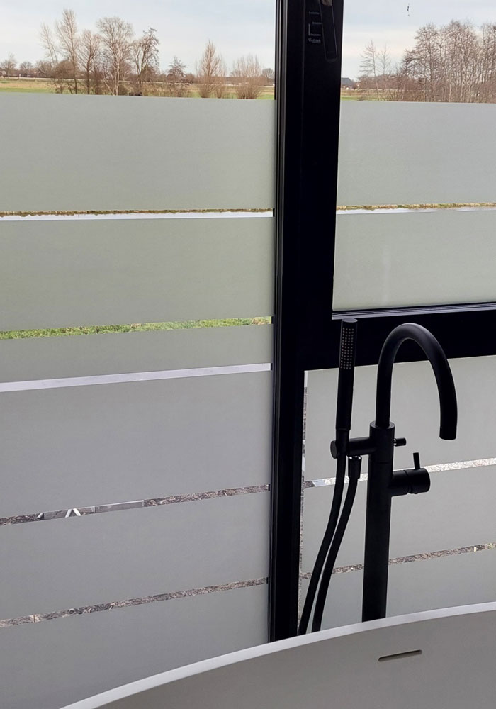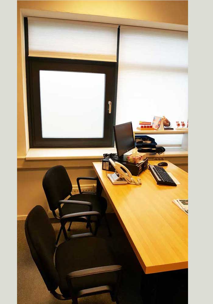 D.m.v. deze folie kunnen we creatieve oplossingen creëren. Hiermee kan je niet door de folie kijken maar laat de lichtinval wel toe. Als voorbeeld praktijkruimtes, of goederen die niet in het zicht mogen staan.