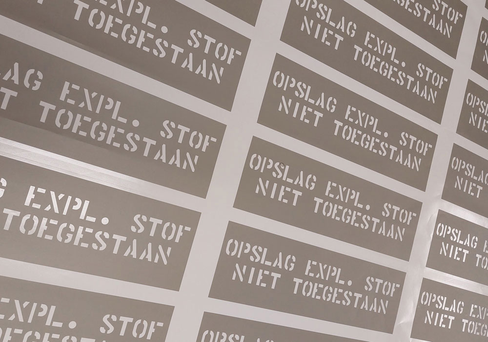 Als de belettering niet in de gewenste kleur leverbaar is kunnen we voor sommige toepassingen zelfklevende sjablonen adviseren. Dit materiaal is makkelijk te verwijderen aangezien het een beperkte kleefkracht heeft en geen lijmresten achterlaat.